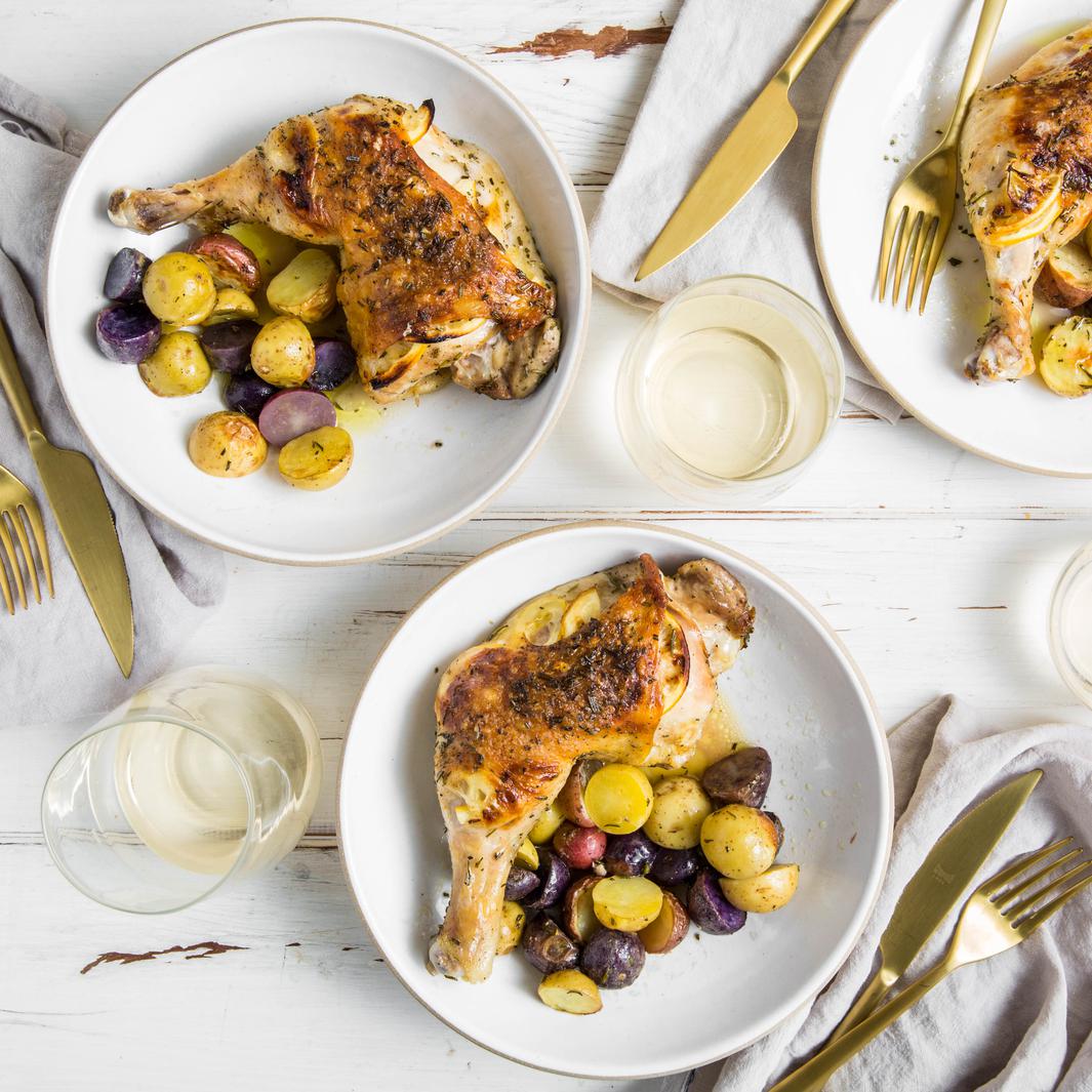 Roasted Chicken and Potatoes with Garlic, Lemon and Herbs from thecafesucrefarine.com Just make sure you add the balsamic vinegar at the right time though, as per the this time of year it's the ideal potato recipe as we hopefully lead into the spring months. Oven roasted chicken with lemon rosemary garlic butter. A gorgeous fall flavored one pan chicken dinner. Serve with some new potatoes, if you like. Everyone has their own recipe for a roast chicken and potatoes and here is mine! The charm of this roast chicken with rosemary and potatoes lies in its simplicity: Meanwhile, mix remaining rosemary, garlic and oil together. And i cannot even talk about the potatoes.